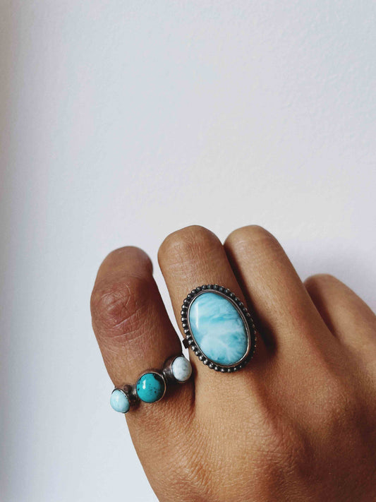 [RSB18015] TRIPLE STONE RING Turquoise/Larimar (Pre-Order)